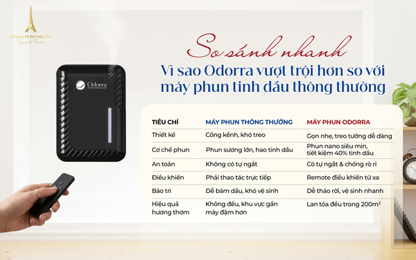 5. So sánh nhanh: Vì sao Odorra vượt trội hơn so với máy phun tinh dầu thông thường