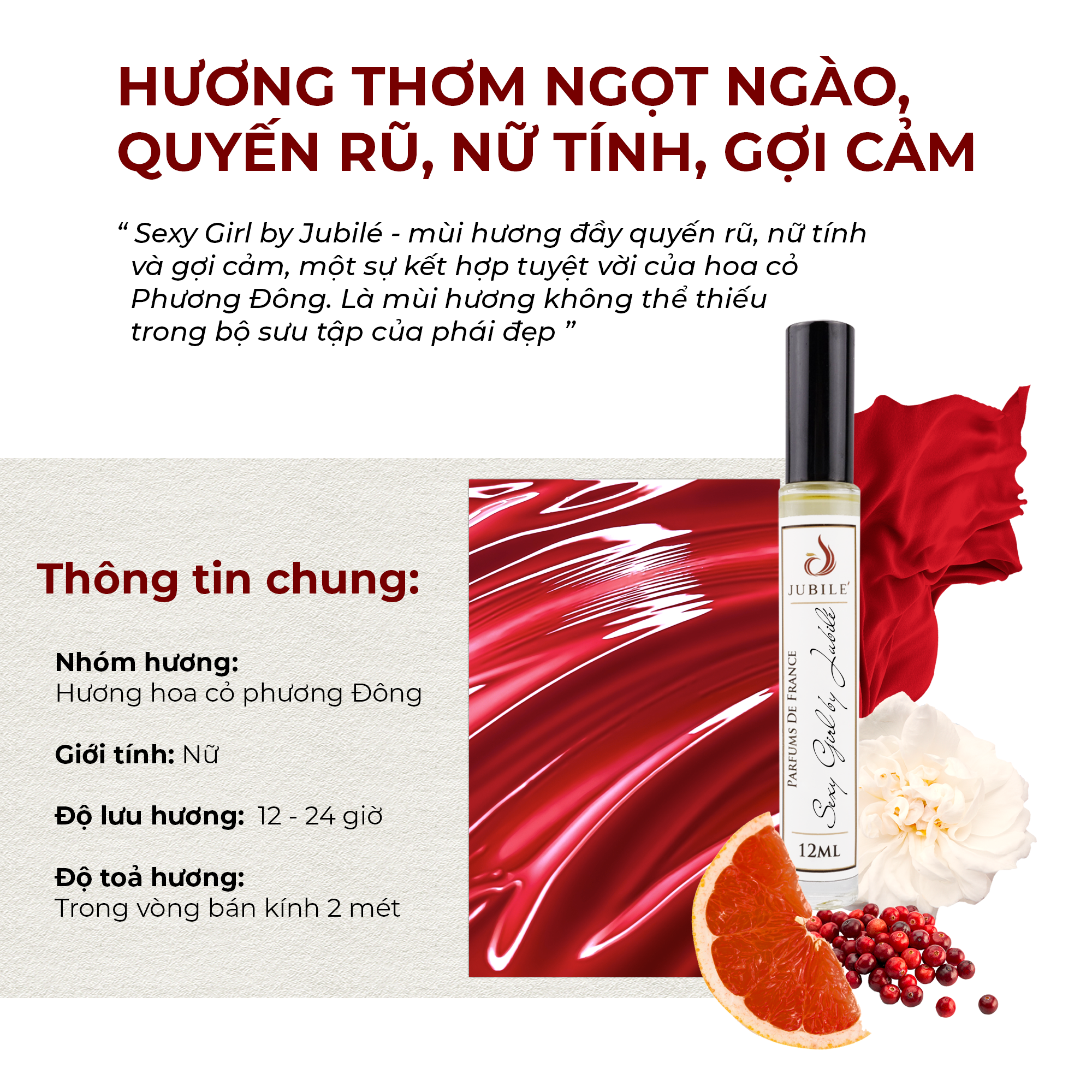 Sexy Girl by Jubilé không đơn thuần là một mùi thơm, đó chính là dấu ấn riêng biệt, sự hòa trộn hoàn hảo giữa nét ngây thơ và khiêu khích, vừa đủ dịu dàng nhưng cũng đủ táo bạo. Một “cú chạm” nhẹ nhàng nhưng đầy ám ảnh, khiến người ấy không thể ngừng nghĩ về bạn.